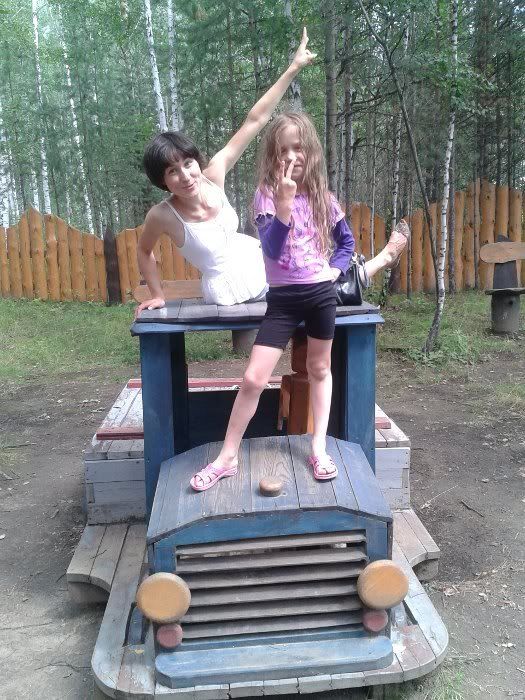 у нас оч жарко, каждый день минимум раз ходим на речку или ездим на озеро купаться, Светка как я водоплавающая. катались на велике, ходили в лес. Света первый раз ела чернику и даже нашла пару груздей  (больше ничего не выросло при такой-то жаре).