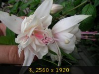 Н.Л.А., это скорее всего не Анабель. Белых сортов много, так пусть эта прелесть будет безымянной, у меня тоже есть сорта без имени. И еще, мне кажется что на листочках есть паутинный клещ. Вам нужно обработать фуксию.