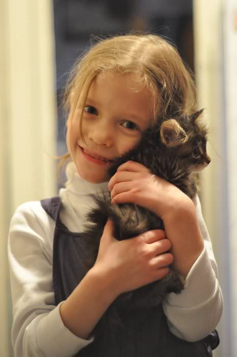 потом кот чуть не сбежал на улицу - рванул как обычно в открытую дверь, и пока я безмятежно что-то готовила на кухне, Света вопила: "Мальчик убежал, лови Мальчика!!!", муж быстро впрыгивал в ботинки и куртку, эта скотина добежала до первого этажа, там рядом с дверю вжалась в пол, распушила хвост и лежала боялась