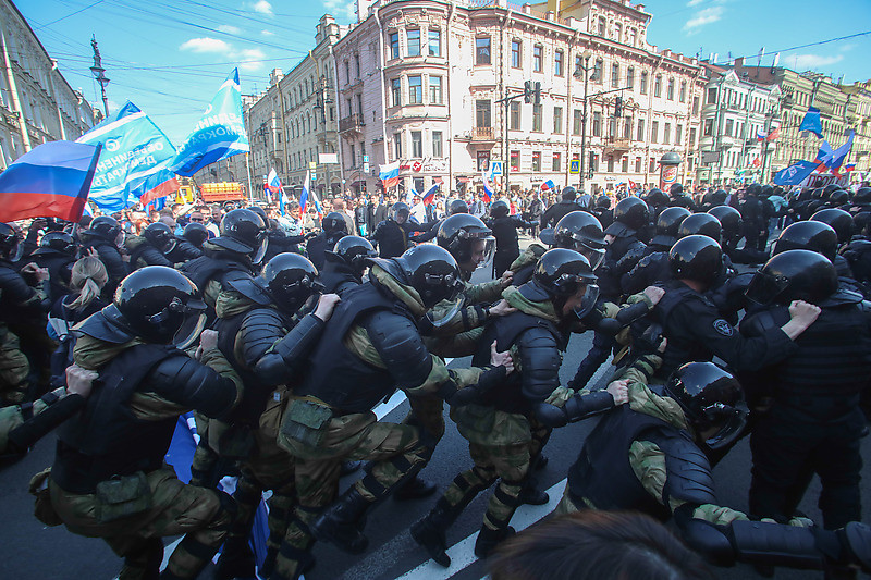 Полиция задерживает участников первомайской демонстрации в Петербурге (Фото: Роман Пименов/Интерпресс). Согласованной (!)