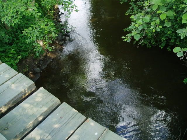 До озера пешком не торопясь минут 10, совсем рядом речка порожистая, через участок, она с двух сторон огибает наш хуторок. Форель.
